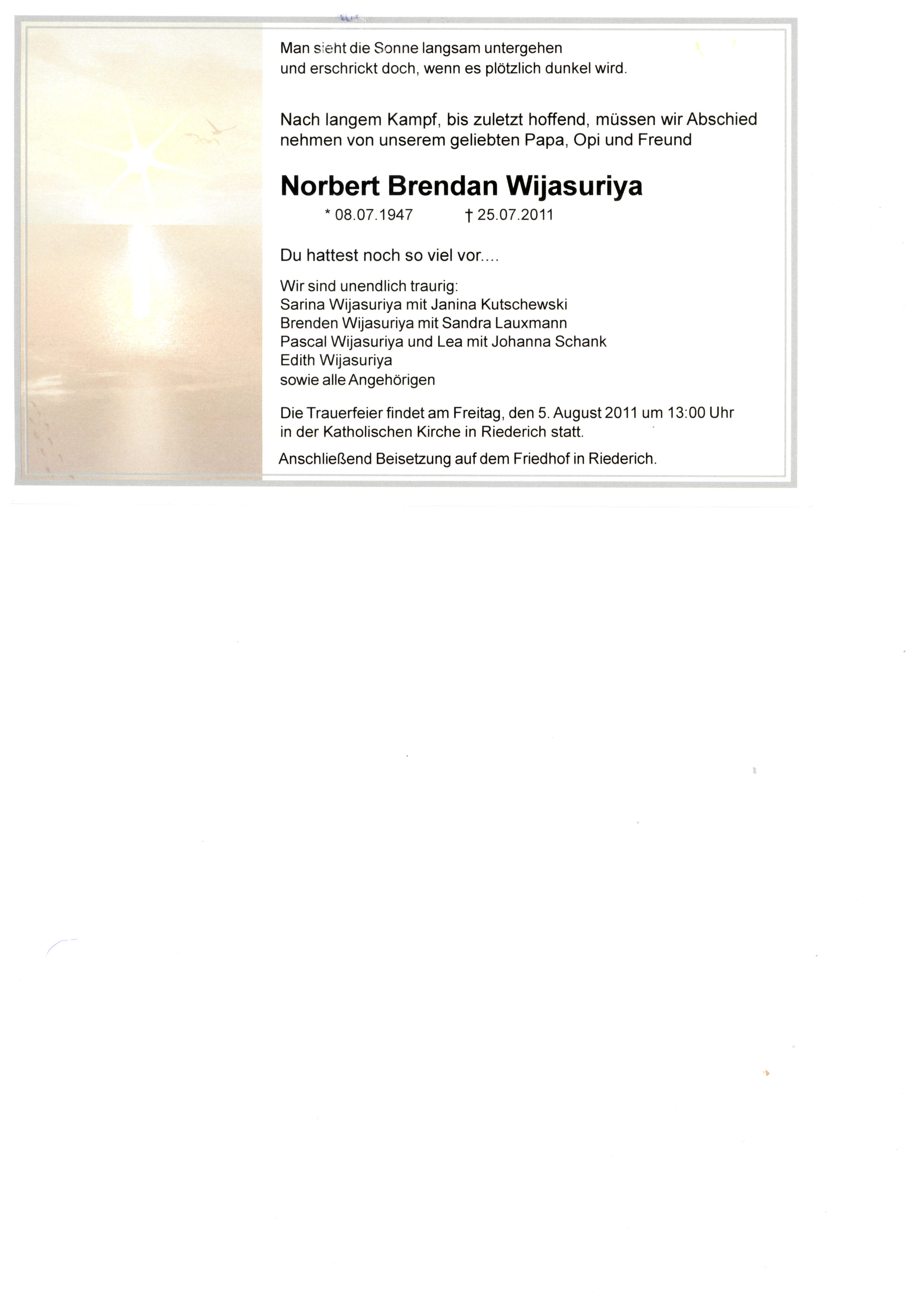 | 1999 – 2009 | Gründung der Tanz und Showband „DasDuo“ . Norbert und ich haben zusammen ca. 20 Jahre miteinander gespielt. Und das nicht nur bei Veranstaltungen sonder auch konzertante Auftritte in den unterschiedlichsten Locations. „Die Musiker“ Mein lieber Freund und Musikerkollege Norbert Brendan Wijasuriya ist nach langer schwerer Krankheit am 26.07.2011 verstorben. |
